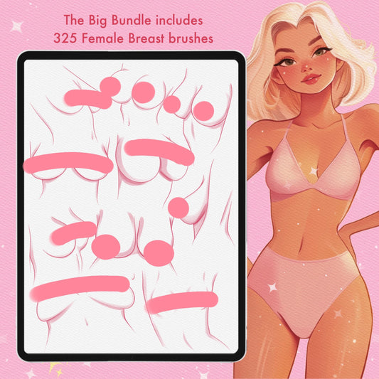 Female Body & Pose Brushes – Procreate, Photoshop & Clip Studio Set, 325 Breast Bust brushes